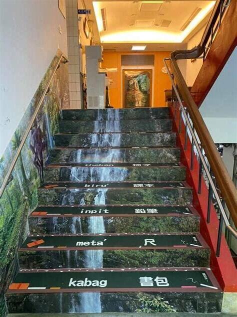 在樓梯上添加圖案和紋理也是一種常見的樓梯美化方式。可以在樓梯的踏步或樓梯扶手上添加花紋或圖案,使樓梯看起來更加有趣和獨特。