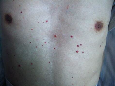櫻桃血管瘤可發生男、女及種族,痣頸、背、手臂或面部身體軀幹位置,但見於手掌、腳掌和黏膜組織,而且,有些會凸起,但只要沒有出現或變化,會身體構成任何影響,需要治療。