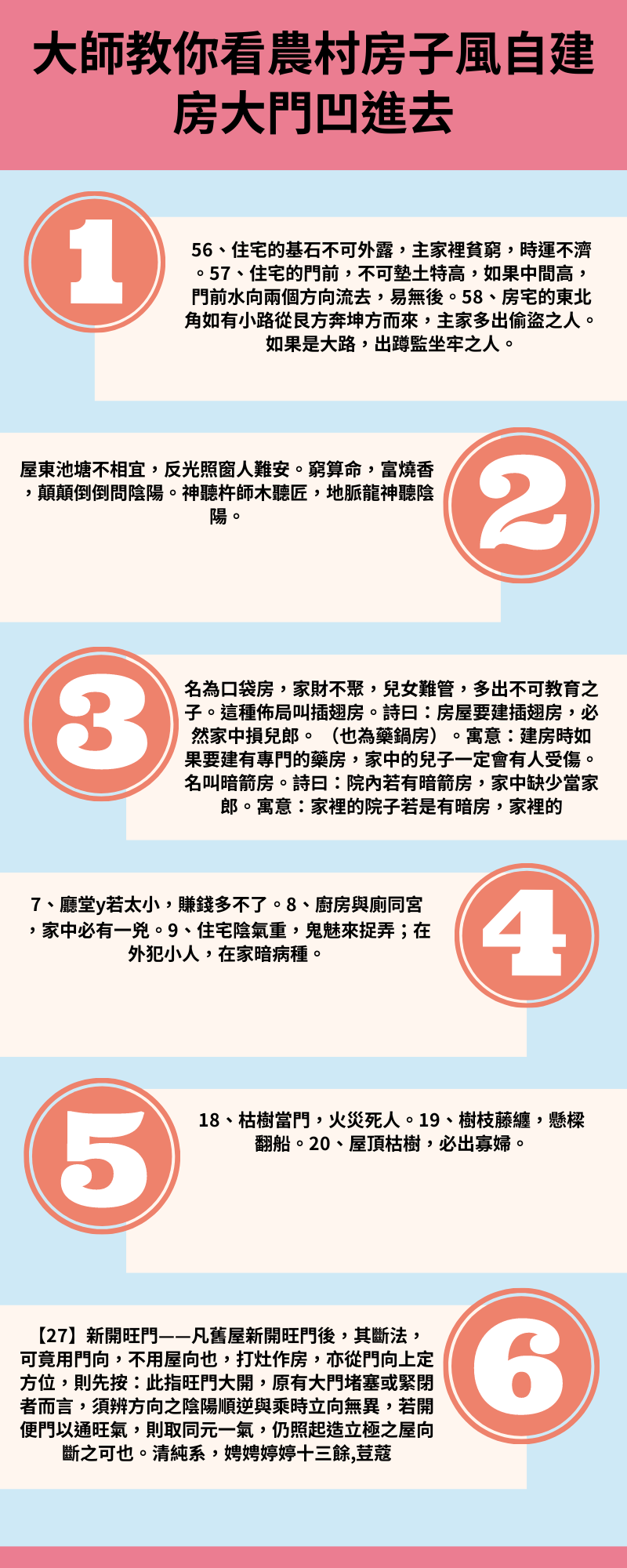 以來歷代先賢不斷對風水學進行實踐驗證,得出了許許多多風水經驗,今天我們來大家詳細列舉,農村住宅風水100條禁忌。