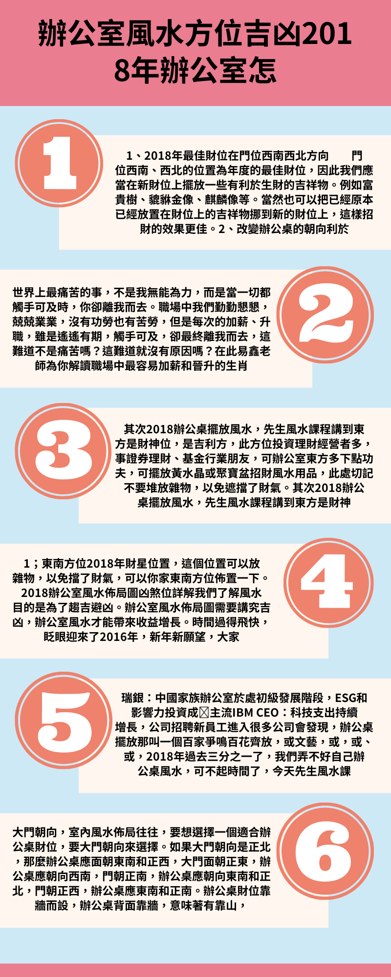 1、朝南 一年裡,要想工作有起色,使得自己地位可以一步一步上升,那麼你除去自己努力外,要利用你周邊東西,它們風水講究擺放。比如辦公桌,2018年擺放位置是坐北朝南,南是一個吉利所在,朝向這個方位,機率。