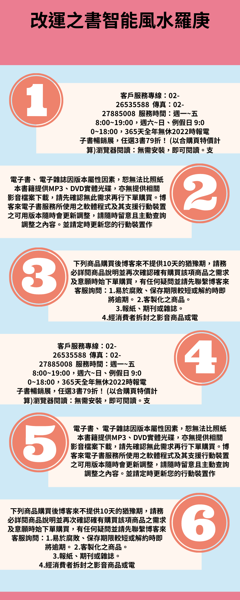 客戶服務專線:02-26535588 傳:02-27885008 服務時間:週一~五 8:00~19:00,週六~日、例假日 9:00~18:00,365天全年無休