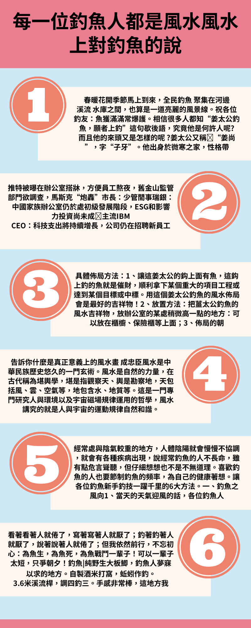 三、風水佈局原理,及前提要旨。原理辦公室裏這姜太公可以看成自己,釣鈎兒釣魚合作方;家中這姜太公看成長輩父母,釣鈎兒釣魚這孩子。所以風水是一種縮引,提前布局讓人鑽進這個局裏。這樣風水佈局前提是要做好事!