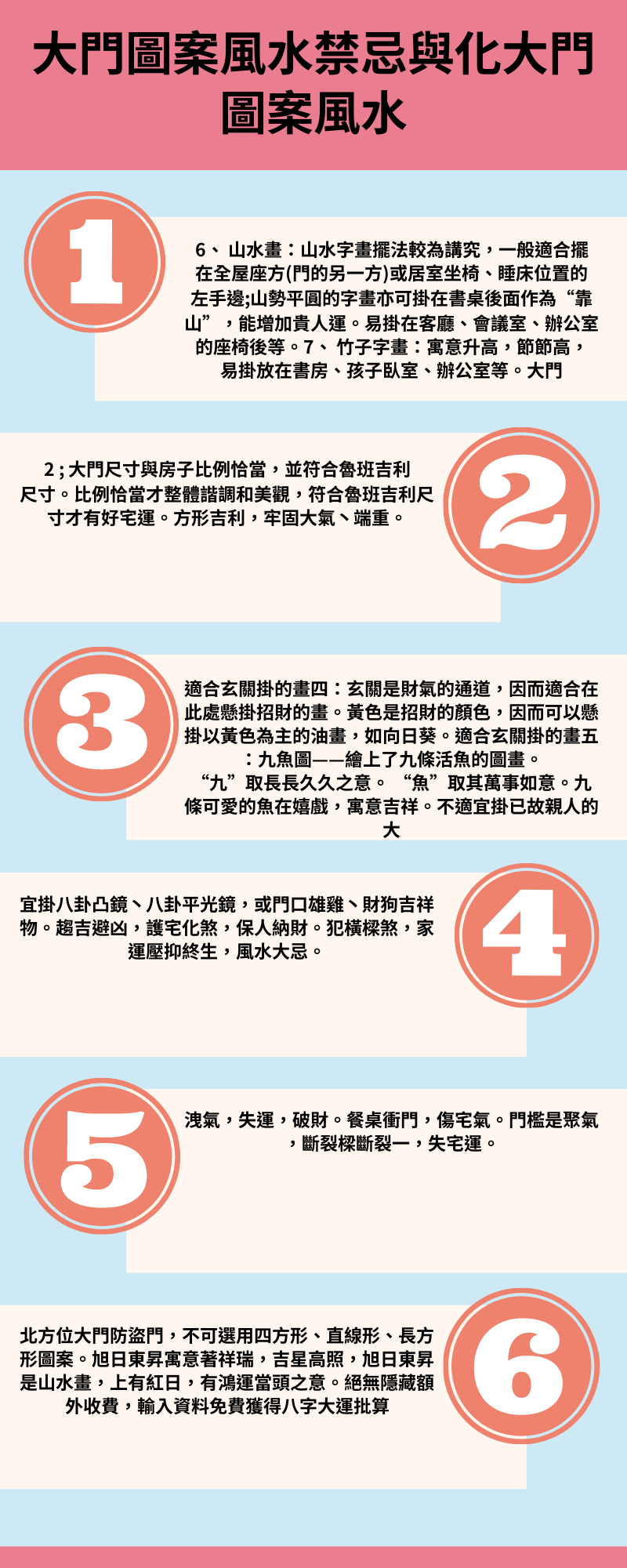 東方位大門和防盜門,不可圓形、半圓形、三角形、尖形圖案;