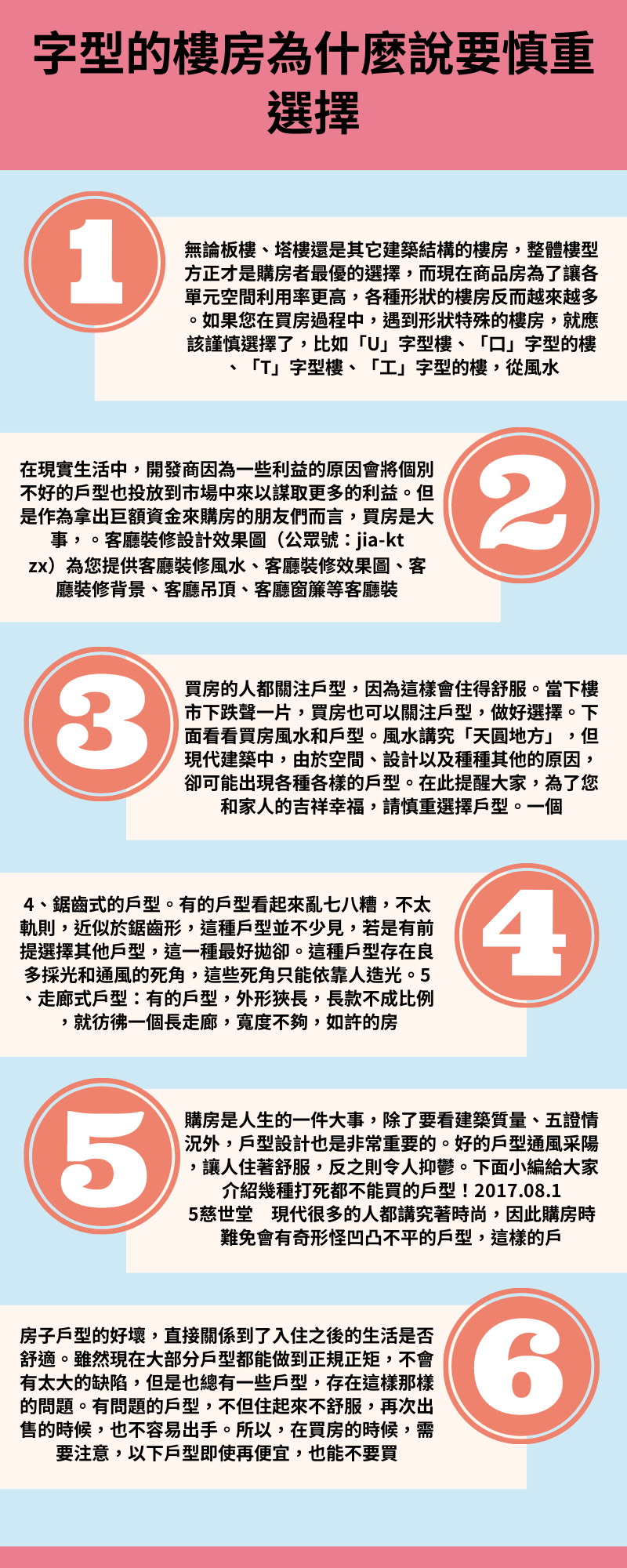 2017.08.15慈世堂 現代很多人講究著時尚,因此購房時會形怪凹凸不平戶型,這樣戶型格局會導致全家人運勢反覆,代表著主人創業,投資,生意方面順心,運勢助風水,是於人磁場。今天慈世堂來教大家,哪幾種戶型,千萬不要購買。
