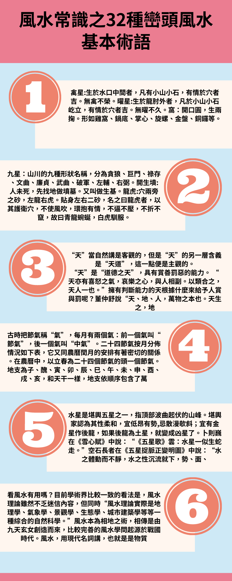 禽星:生於水口中間者,有小山小石,有情於穴者吉。無禽不榮。
